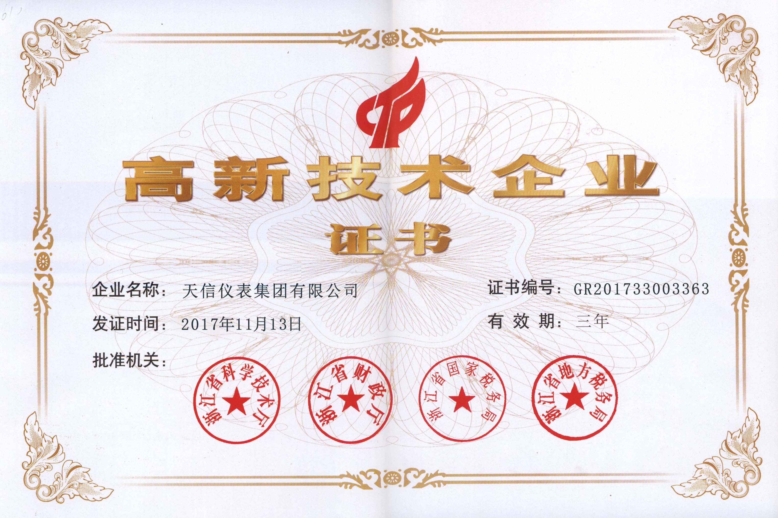 高新技術企業證書