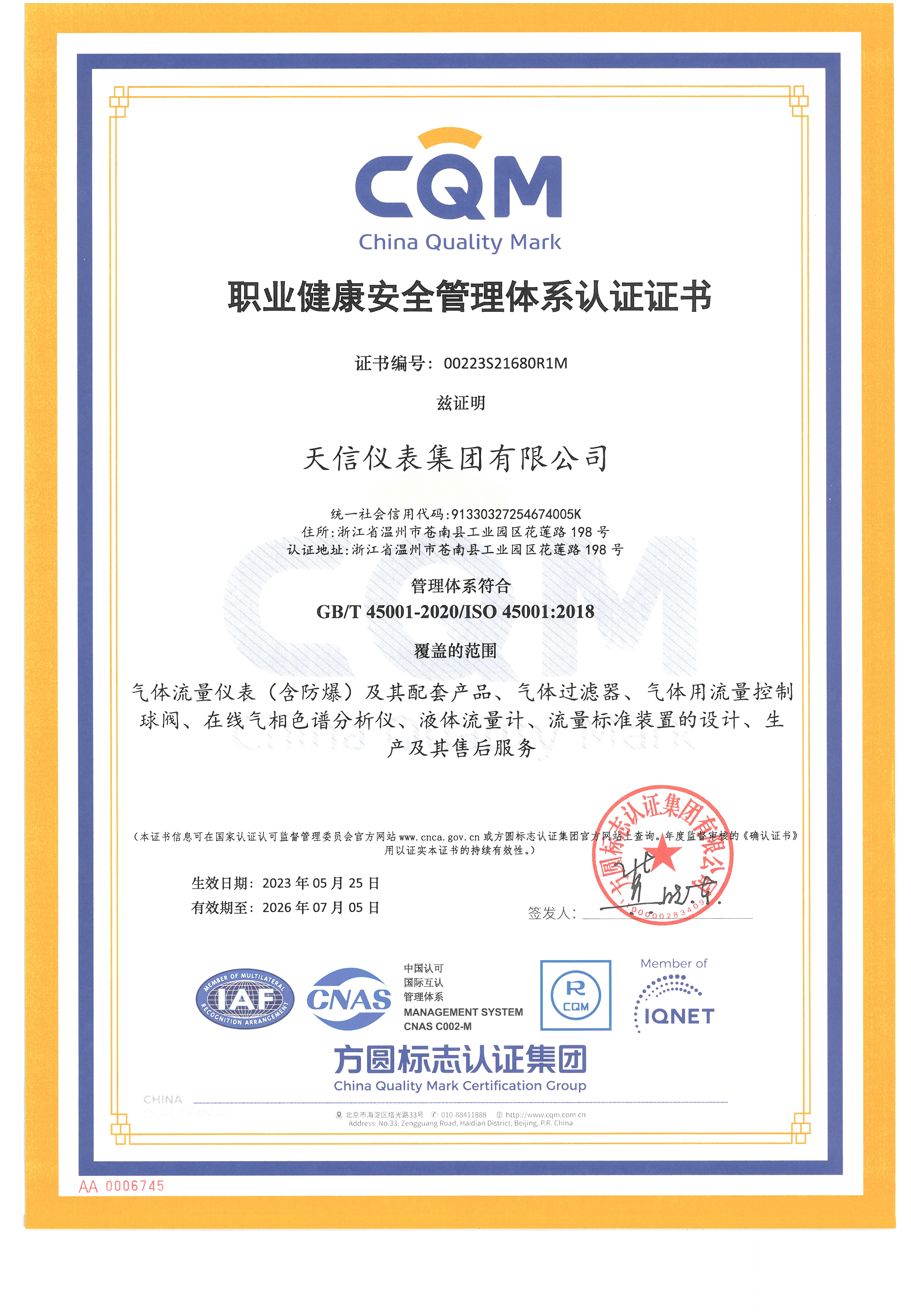 • 質量管理體系認證證書