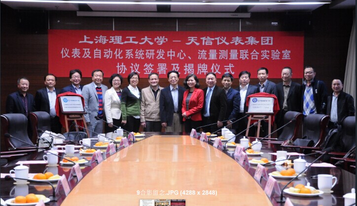 2014年11月25日下午,由上海理工大學與天信儀表集團有限公司合作建立的“上海理工大學—天信儀表集團儀表自動化系統研發中心、流量測量聯合實驗室”正式掛牌使用。上海市教委科技發展中心主任許開宇等教委領導、上海理工大學副校長鄭剛等校方領導、蒼南縣副縣長林朝朝等政府領導、天信儀表集團總裁范叔沙等企業代表出席揭牌儀式,并由上理工光電學院院長莊松林院士和天信儀表集團常務副總裁兼總工葉朋揭牌。