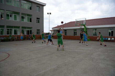參觀后,一場軍民籃球賽隨即激烈上演。雙方球員本著“友誼第一,比賽第二”的原則,在賽場上奮力拼搏、積極進攻、全力防守、默契配合,共同為在場觀眾奉獻了一場精彩的比賽,最后比分為87:83,天信隊以微弱的優勢勝出。